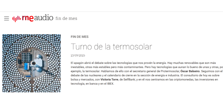La energía termosolar mantiene su papel esencial en la transición energética, aunque el sector afronta importantes desafíos regulatorios que condicionan su desarrollo en España. En un momento clave para cumplir los objetivos del PNIEC 2030, la tecnología termosolar —líder mundial y con sello “made in Spain”— necesita un marco estable que incentive nuevas inversiones y reconozca su valor en la descarbonización y el almacenamiento energético. Así lo destaca Óscar Balseiro, secretario general de Protermosolar, en este reportaje publicado por ABC Empresa.