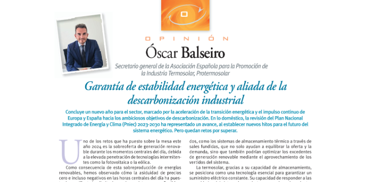 En este contexto, la energía termosolar destaca por su capacidad de aportar firmeza al sistema y desplazar la generación renovable del día a la noche. Además, se consolida como una solución estratégica para la descarbonización de procesos industriales que requieren calor a media y alta temperatura, con un elevado potencial de aplicación en sectores clave.